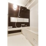 ジオブラウンのパネルが上質な印象を与えるユニットバス