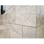 石張りの外壁で勝つ蔵のイメージとなると、なかなかピッタリの石が見つからず、様々なメーカーのサンプル等を取り寄せて検討しました。最終的には天然大理石のADVAN社アドストーン「バニラ・ホワイト」に決定。施工のために訪れた業者ですら初めてのケース、外壁大理石張り施工は慎重にも慎重を重ねて一枚一枚、丁寧に貼られていきました。2階部分は白のサイディングを張り、ツートーンの和モダン、かつ重厚な外観に仕上がりました。