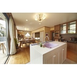 奥様の趣味のハーブ教室をつくり、人が集う空間にされたいというご要望でリフォームのご依頼をいただきました。お庭に面した広い空間に、タイルをあしらったオリジナルな流し台を造作し、お客様ご希望のブルーのタイルをアクセントに、カントリー調の雰囲気が似合う素敵な空間になりました。お庭を眺めながらブランチを楽しまれたり、ゆったり過ごせるお気に入りの空間になりました。