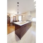 会話が弾む無垢の木のアイランドキッチン