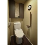 (旧東京ガスリモデリング株式会社での事例です。)お客様のお好みに合わせて、落ち着いたトーンの内装をご提案しました。造作の吊戸棚をタイルで装飾し、お客様のお好みの空間になりました。便器は既存です。