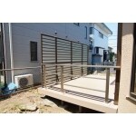 ウッドデッキの設置を希望されていました。目隠しにもなっていた庭の木が無くなってしまう為、目隠しのパネルをご希望されていました。そこで横格子の半透明なパネルが入っているタイプをお勧めしました。太陽の光を遮らず明るいので、リビングの窓を開けていても、周りから見えにくくなりました。デッキ材は、耐久性の高い樹脂製を使いました。色合いが木に似ているので風合いも良いです。