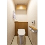 トイレ背後の収納棚にタンクが隠れているレストパル。 タンクレスのように見た目がすっきりします。