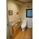間取り変更をし、1.5帖の広いトイレになりました。手洗いを別に取り付け、手摺の代わりに立ち座りをサポートしてくれるカウンターを設置しました。体重をかけても安全なタイプです。