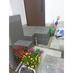 既存のタイルに近い物を探して、拡張させて頂きました。タイルのロットが違うので、若干色は違いますが、お子様が先に出られても踏み外す心配も無く、安心して外出できます。