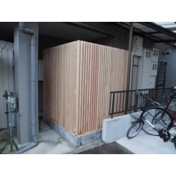 増築できる場所が勝手口裏の自転車置き場などがある共有スペースしかなく、まえる見えになってしまうので、目隠しも提案しました。