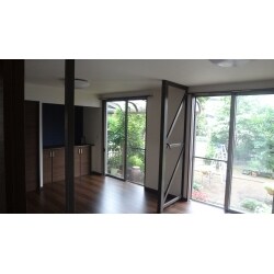(平成29年4月1日 体制変更以前の(旧)永大プランニングの実績です)和室の段差をなくして、ひとつなぎのリビングへ 掃き出し窓を改修する事によって、段差もなくなります。 断熱性の高いペアガラスのサッシを使うので、断熱性能も向上しました。構造上外す事が出来ない鉄骨部分はあえてむき出しにすることで一体感を高めました。フックを引っかけてインテリアとしても活用する事が出来ます。