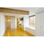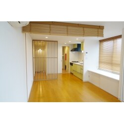 狭さを感じさせることなく、スペースを仕切ることの出来る 木調ブラインド、縦格子を提案しました。