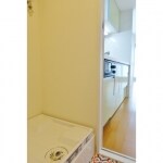 洗濯機置き場と、洗面化粧台をコンパクトにまとめました。