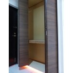 玄関収納の下部にLEDライトを設置し、足元を明るく見えやすくいたしました。このライトはスマートフォン等からの設定で、いつもで好きな色(選択可能は色は約1600万色)に変更することができます。 また、収納棚に関しても、靴はもちろん、大き目の物を収納できる棚を設置させて頂きました。