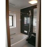 タイル張りの浴室はお掃除が行き届かず、使い勝手も悪いとの事でしたので、ユニットバスを採用いたしました。アクセントパネルに柄のある黒、また手摺りやシャワーヘッド等をメタリック調にしシックで落ち着きのある浴室となりました。断熱効果もあるので冬場でも暖かいバスタイムをお過ごし頂けます。