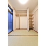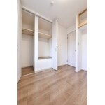 木の持つ風合い、自然な暖かみのあるフローリングの洋室を提案。収納については、天井まである大型クローゼトと普段使わないものを収納するための天袋収納を提案。