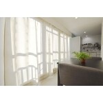 南向き掃出し窓にはカーテンで柔らかな光を取り入れるよう配慮しました。