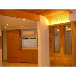 間取変更に伴い各所補強と同時に床下.壁.天井裏と断熱吹付とデザイン重視でしたのでクロス仕上ではなく珪藻土と和のぬくもりで一部天井.壁に化粧木製等で仕上ました.