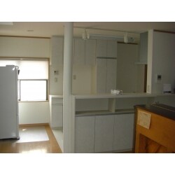 キッチン取替で対面式をお考えでしたので吊戸棚は取付をしないでバック収納と言う形で収納を確保しました.