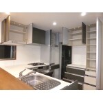 システムキッチンは使い勝手のよいTOTOのCJシリーズでご提案させて頂きました。システムキッチンの収納+パントリーで大容量の収納を実現いたしました。