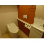 壁の一部をブラウンにすることで落ち着いた空間を演出させていただきました。便器は、快適機能を凝縮したシンプルデザインのTOTOネオレストをご提案させて頂きました。