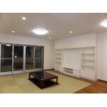 お客様のご要望通り、従来のキッチン、子ども部屋・リビングのスペースをひとつにつなげ、広々とした収納たっぷりのLDKをご提案させて頂きました。 リビングスペースには畳を使い洋室ながらも和を取り入れた落ち着いた空間とし、大型の壁面収納によって大容量収納を実現致しました。