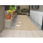 リンクストーンを中央にして歩きやすく、雨などの水がたまらないよう両側に砂利を敷くことをおすすめしました。