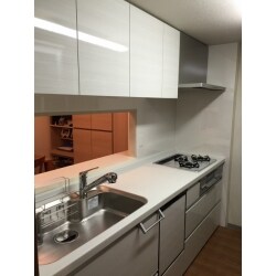 当初は、元々お使いであった卓上型の食器洗い乾燥機が故障してしまった為、食器洗い乾燥機のご交換のご依頼を頂いていました。 しかし似たサイズのものが無く、また、既存のキッチンにはビルトイン食器洗い乾燥機を設置することが出来なかった為、キッチンの交換リフォームをご提案しました。 天井の高さに対し、吊戸棚のサイズが大きく、圧迫感を感じていらっしゃいました。 そこで、吊戸棚の大きさを、奥様、ご主人様が使いやすいサイズに変更し、空間の圧迫感が解消されました。 カウンターや扉カラー、ガスコンロのフェイストップのお色を全て白に統一して、広々と感じますとの、ご満足のお声を頂きました。 また、フロアキャビネットにはビルトイン食器洗い乾燥機を設置しました。 見た目もスッキリし、調理スペースを広々とお使い頂けるようになりました。