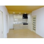 独立キッチンから広々したオープンキッチンへリフォームしました。 照明は、LEDダウンライトに交換しました。