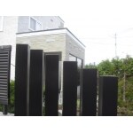 外部に設置するので、耐久性を重視しました。角柱を縦に並べたものは、鉄骨で造られその上に塗装をしています。