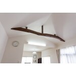 段差解消の為、床を9センチ上げることにより閉鎖感が出るため、解消策としてリビングの一部を勾配天井へ変更しました。また、隠れていた太鼓梁がリビングのシンボルにもなりました。