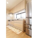 システムキッチンは、クリナップのクリンレディー。 床材に合わせ、ナチュラルな木目の扉を使用してます。 キッチン背面には同じクリンレディーのカップボードを設置。 DKとの間に壁を設けて半分区切った形にしました。