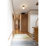廊下のフローリングを変えました。 玄関収納はパナソニックのコンポリアを採用。