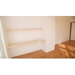 新築マンションのキッチンに棚板を2枚設置して収納力抜群に