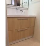 キッチンと面材を合わせた洗面化粧台です。メーカーを揃えると、面材を揃えることが可能ですので、トータルコーディネートがしやすいメリットがあります。
