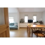 純白のスイスしっくいに囲まれた、美術館のようなリビング