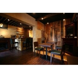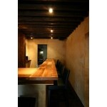 古材をアクセントにしたバーレストランの施工をおこなった。カウンターも古材にて製作、落ち着いた色あいでまとめた大人の空気が漂う空間になっている。