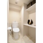 収納不足を解消するために、トイレの拡張を行いました。 内装も一新し明るい空間に仕上がりました。