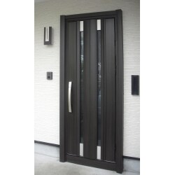 玄関ドアを新しく交換しました。 そして、玄関ドア廻りの外壁のみタイルへと貼り換えました。