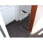 もともと洗濯機置き場だった部分。 右側の壁を抜き、洗濯機置き場を増設しました。 新しく洗面台(下部のみ)を設置し、鏡は弊社大工お手製の 可動式ミラー! 採光を大切にしているオーナーの為に、可動式にしました!