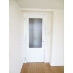 フローリングは朝日ウッドテック ネダレス(ブラックチェリー)をご提案。 リビングと和室の間の間仕切りは撤去し広々としたLDKにしました。 また建具は枠を既存利用し塗装、扉は茶色から白色に変更しまし、リビングの建具には新たにチェッカーガラスを入れました。