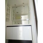 洗面化粧台の鏡は既存利用で下台のみLIXILルミシスにお取替え。キッチンと同様明るくイメージが一新しました。