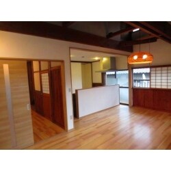 現状のキッチンをリビングにして、隣の部屋とリビングと繋げる形でキッチンを造ったらいかがでしょうか? そうすれば、古民家風のイメージを損なうことなく、大きいリビングを造ることも出来ます。