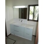 大和市 収納スペース30%UPの洗面化粧台でスッキリ