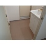 洗面所の洗濯パンの所に洗面化粧台を設置しました。床はCF張替え、天井・壁クロス張替えを実施しています。