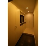 玄関収納は既存で使われている既製品柄を取り寄せ、同柄にて造作しています。 廊下で使用した床材はINAXのタイル。 大理石のような鏡面が足元から高級感をかもし出します。 リビング入り口にあるコントローラー周辺は、寝室で使用した濃紺のカラークロスの背面で、ちょっとしたデザインアクセントです。
