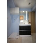 洗面室は空間を拡張し、洗面化粧台、洗濯パンのレイアウトを変更しました。