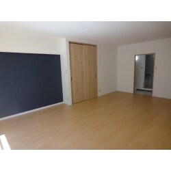 元々お部屋は6畳の和室とダイニングキッチン、水廻りは浴室・洗面・トイレが一緒でした。 6畳の和室とダイニングキッチンをひとつなぎにして広々としたLDKに。 元々あった和室の押入は撤去し紺色のアクセントクロスを施工。その隣にはクローゼットを設置しました。