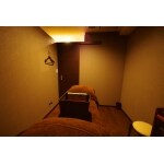 お客様に心から安らいで頂けるよう、お隣や周りの方が気にならない5つのマッサージルームを設けました。 それぞれが小スペースながらも程よい照明の明かりと、ベージュやブラウンなどアースカラーでまとめた落ち着いたクロスに、木目柄のアクセントを加え、リラックス感の漂う施術室に。 間取りの構成にもこだわり、天井面へと露出しがちな支柱も壁支持にてスマートに納めています。