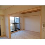 集合住宅のため、床に防音処理をしてから無垢板を施工しました。 無垢材自体にも防音効果はありますので、より気兼ねなく生活ができると思います。 壁は調湿効果の高い珪藻土を塗りました。 珪藻土には化学物質等、汚れた空気を吸着する能力があるので、健康で快適に暮らして頂けると思います。 建具にもレッドパイン材を使用するので、窓枠・建具枠から全て赤松材に交換しました。