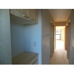 玄関収納も赤松材を使用 収納の中身は全室桐になっています。 桐には、調湿効果の他に 消臭効果、防虫効果、殺菌効果などがあるため 下駄箱やクローゼットにも最適です。