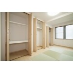 使っていない居室には物があふれていました。 収納をたくさん設けて余分な家具を置かなくても済むようにしました。 琉球畳を敷き詰め、素敵な空間となりました。