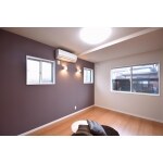以前はキッチンと納戸として使用していたスペースを収納を多くとった寝室に変更。 シックなアクセントクロスで、落ち着きのある空間に。