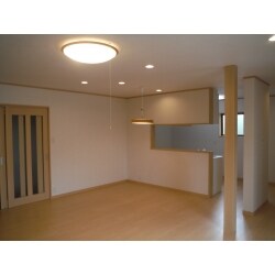 ダイニングと居間(和室8帖)を仕切っている壁を取り払い、お家の中央に明るく広いL.D.Kを配置しました。 構造上抜くことが出来ない柱は、化粧柱として見せました。 暖かいお部屋にするため、リフォーム箇所の天井・壁・床に、しっかりと断熱材を入れました!